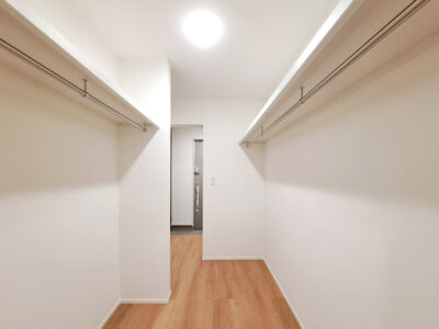 家の中心にファミリークロークを配置。2方向から出入りできて、家事動線もスムーズ。収納と使いやすさを兼ね備えた便利な空間です。