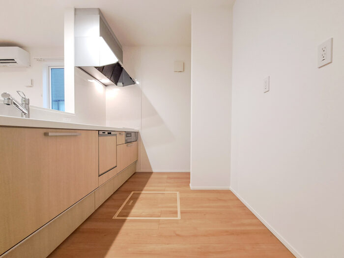 お手入れラクラクIHヒーター、食器洗浄乾燥機つき。背面にパントリー付き。