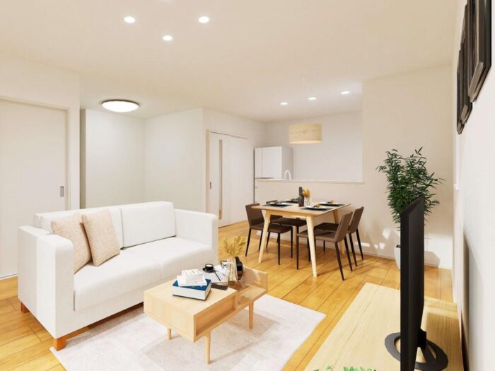 南向きの窓から光がたっぷり差し込むLDK。明るく開放的な空間で、家族の時間を心地よく過ごせます。