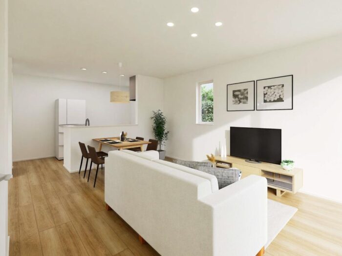 南向きの窓から光がたっぷり差し込むLDK。明るく開放的な空間で、家族の時間を心地よく過ごせます。