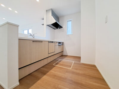 キッチンからはお部屋全体が見渡せ、家事をしながらお子様のリビング学習も見守れます。