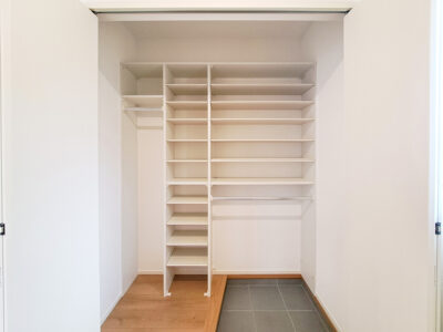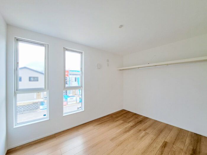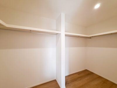 主寝室のクローゼットはたっぷり4帖!ご夫婦の衣類のほか、シーズンのお布団などもたっぷり収まります。