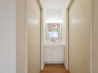曇り止めコート、三面鏡裏・キャビネット収納つき。