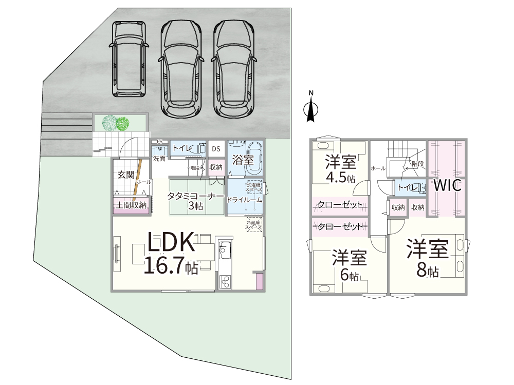 初期費用ゼロで太陽光発電システム搭載の高性能エコ住宅!外構付き、駐車3台可能。