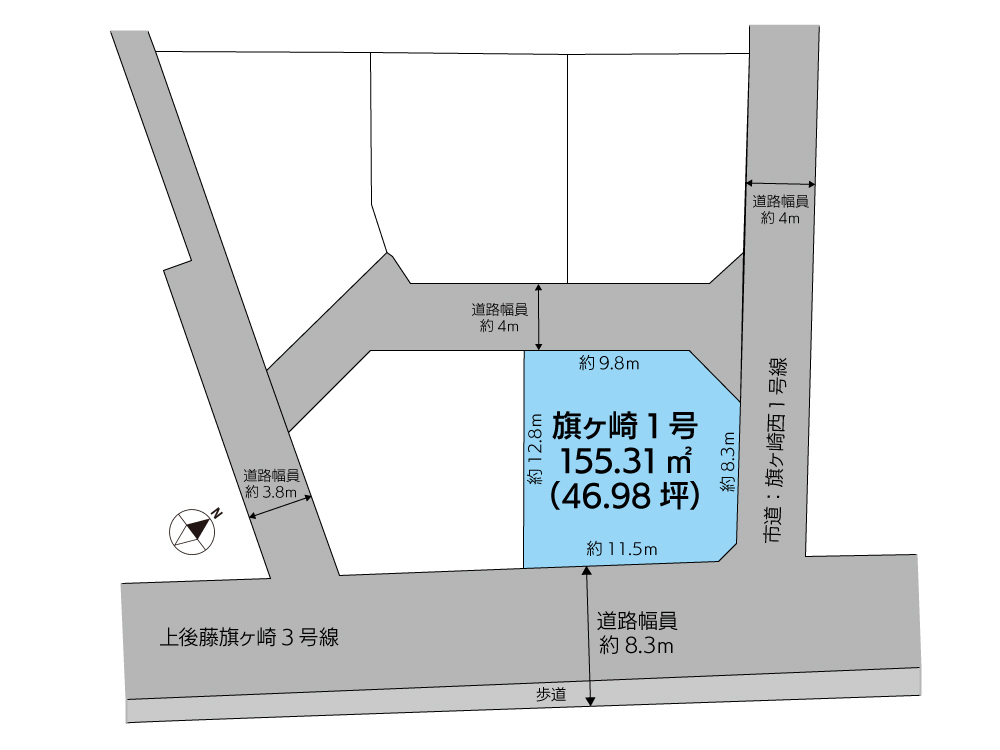 私道負担・道路 | 無・東側/8.3m幅、北西側/4m幅、北東側/4m幅、アスファルト舗装 | 諸費用 | その他諸費用:水道加入者負担金 |