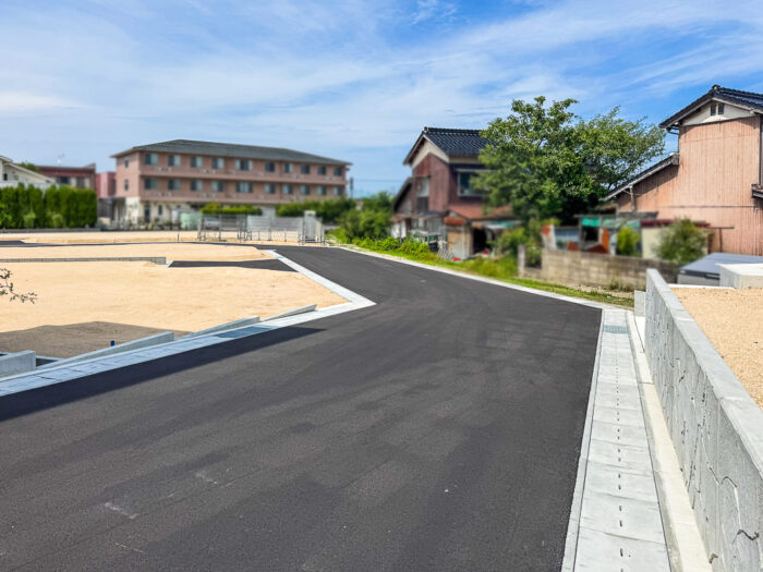 現地(2025年7月24日)撮影 セブンイレブンへ徒歩3分、国道9号線へ車1分で出られる便利な人気のエリアに全8区画の新規分譲地が誕生!