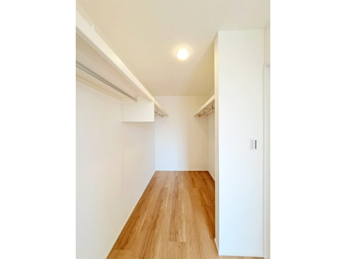 大容量のウォークインクローゼットで、衣類や季節物もすっきり収納。片付けがラクになり、生活空間も広々と使えます。