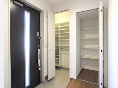 ワイドな上がり框で身支度がしやすい玄関です!靴などたっぷりしまえる土間収納付き!