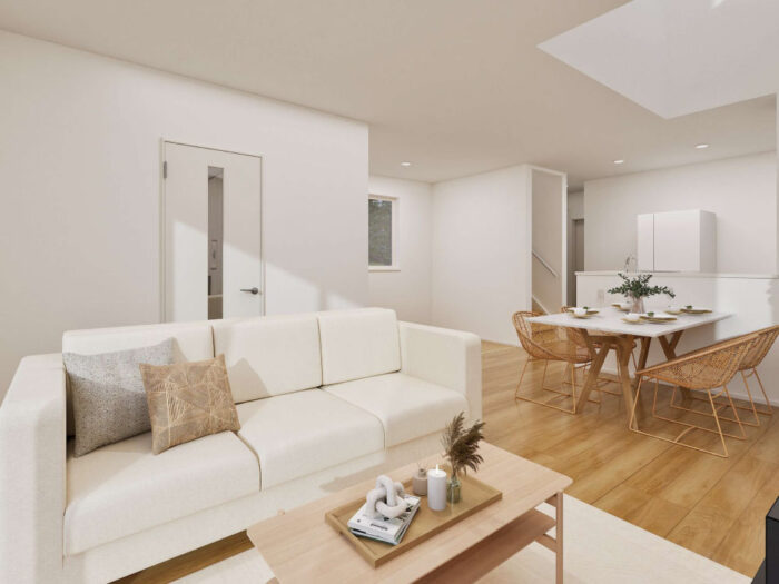 3面に窓を設けたことで光がたっぷり入り、吹き抜けと合わさって実際以上に広がりを感じられる、明るく開放的なLDKです。