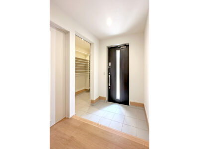 キッチンの奥に水まわりをまとめた、使いやすい間取り。料理・洗濯・片付けの流れがスムーズで、移動も最小限。忙しい時間帯も、自然と効率よく動ける設計です。