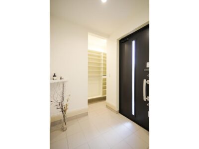 キッチンと横並びに水回りを集約し、家事の動線をスムーズに。料理や身支度の流れが自然につながるから、忙しい時間帯も落ち着いて過ごせます。
