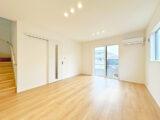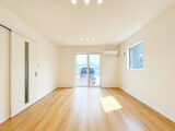対角に大きな窓を配置した開放的なリビング。ゆとりある敷地プランなので、アウトドアリビングにも適しています。